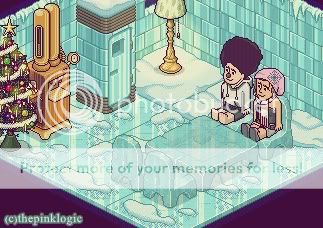 My buddy and I are heading to Northpole by the `La Visto Express in habbo! I`m flying the train(the train can actually fly).